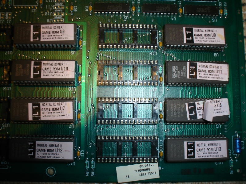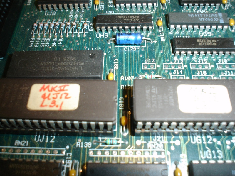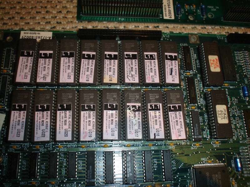 The Main board has two rows of 8 Eproms ( Row G and Row J, sockets 14 - 23 )